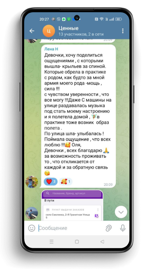 Меня удивляло, как в практиках совпадают люди с одной и той же темой, как отзывы девочек перекликаются с моими и меня догоняют инсайты!