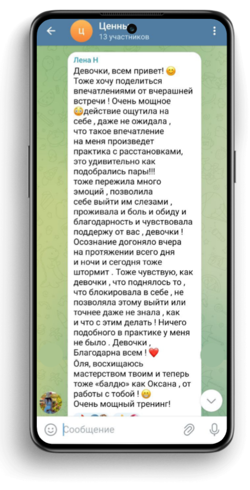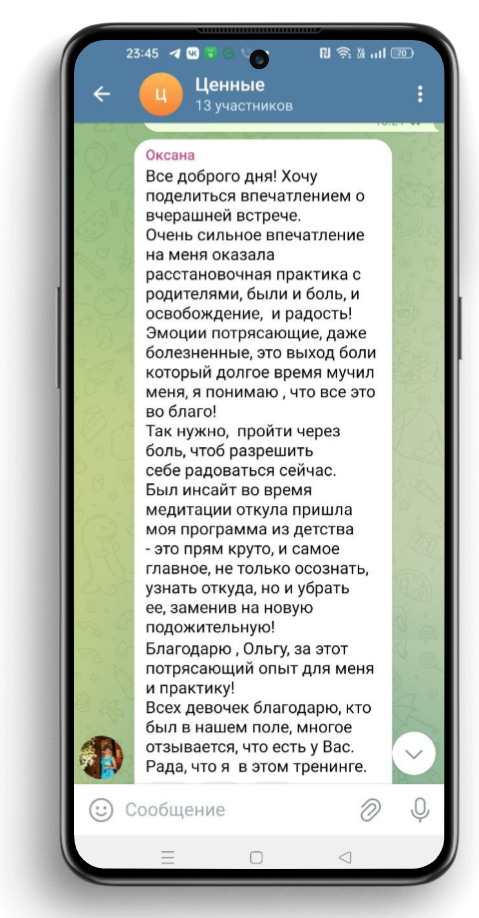 Ольга благодарность от чистой души и сердца за этот тренинг.